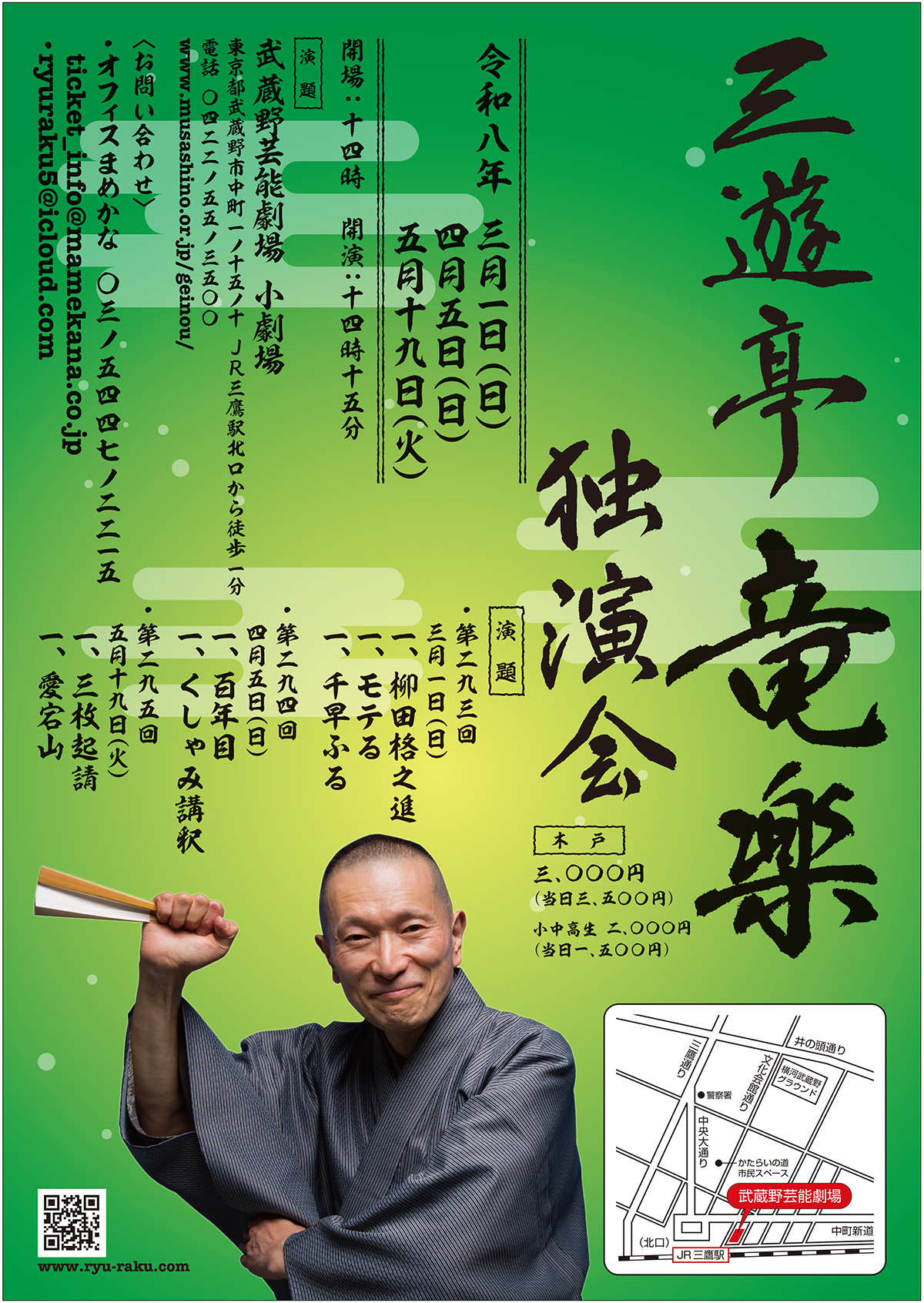 落語三遊派の正統的話芸を受け継ぐ三遊亭竜楽が江戸落語の洗練された演技を披露します。